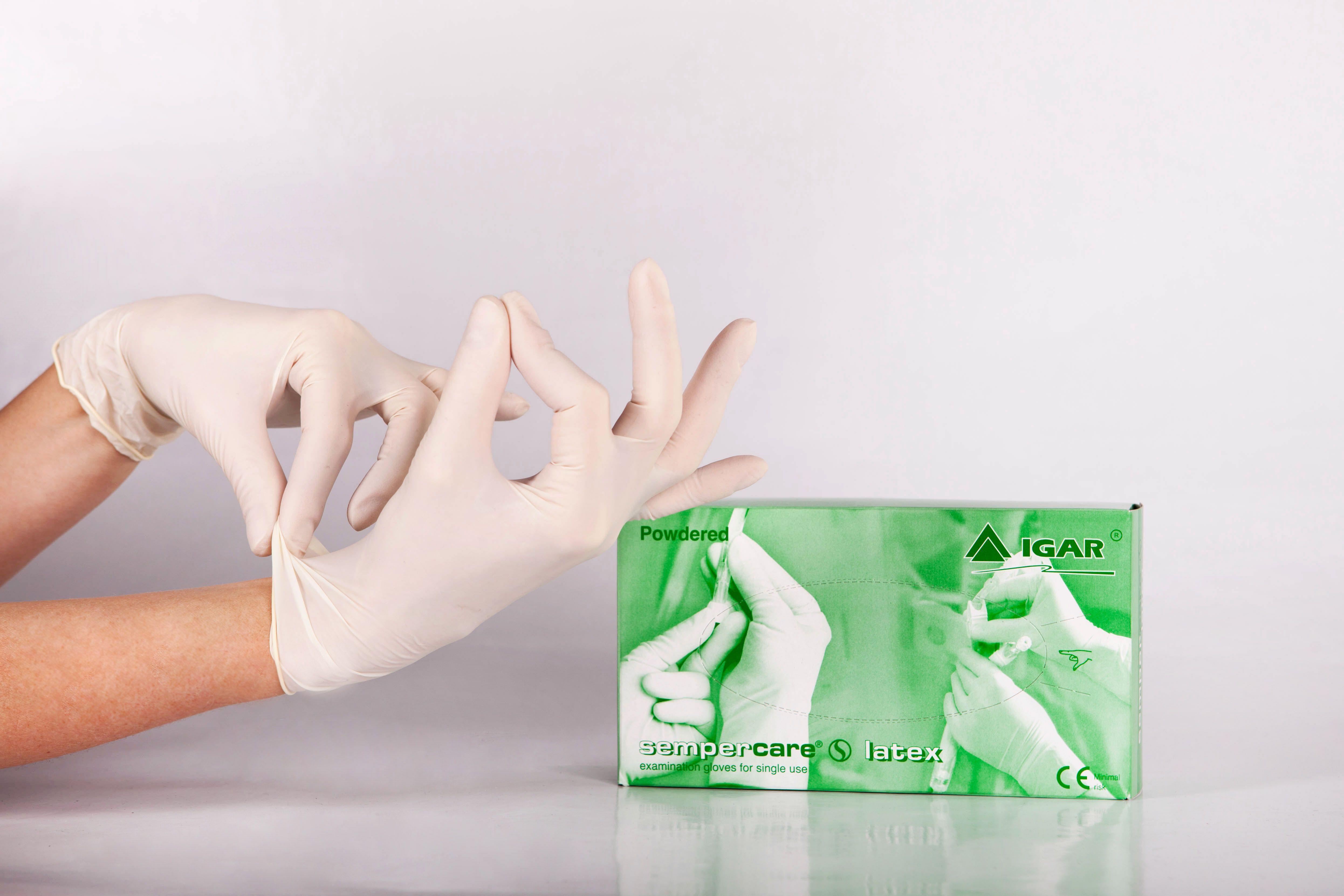 Перчатки "Sempercare" смотровые нестерильные припудренные латексные