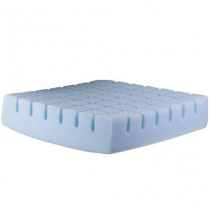 Подушка сделана из поролона в виде "вафли" с рельефными ячейками для оптимального распределения давления и предупреждения трения, которые могут послужить причиной появления пролежневых ран при длительном сидении.