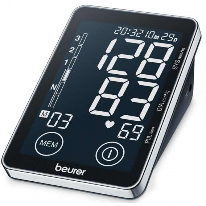 Прилад для вимірювання кров'яного тиску в плечовій артерії німецького бренда Beurer, BM 58 винятково простий і зручний у застосуванні. Цей тонометр – це елегантний прилад для вимірювання кров'яного тиску в плечовій артерії із сенсорними кнопками та чорним дисплеєм із підсвічуванням. З цього приладу для вимірювання артеріального тиску можна також надіслати вимірювані значення на комп'ютер. Для цього вам знадобиться стандартний кабель USB (входить до комплекту постачання), а також програмне забезпечення beurer HealthManager, яке можна безкоштовно завантажити.